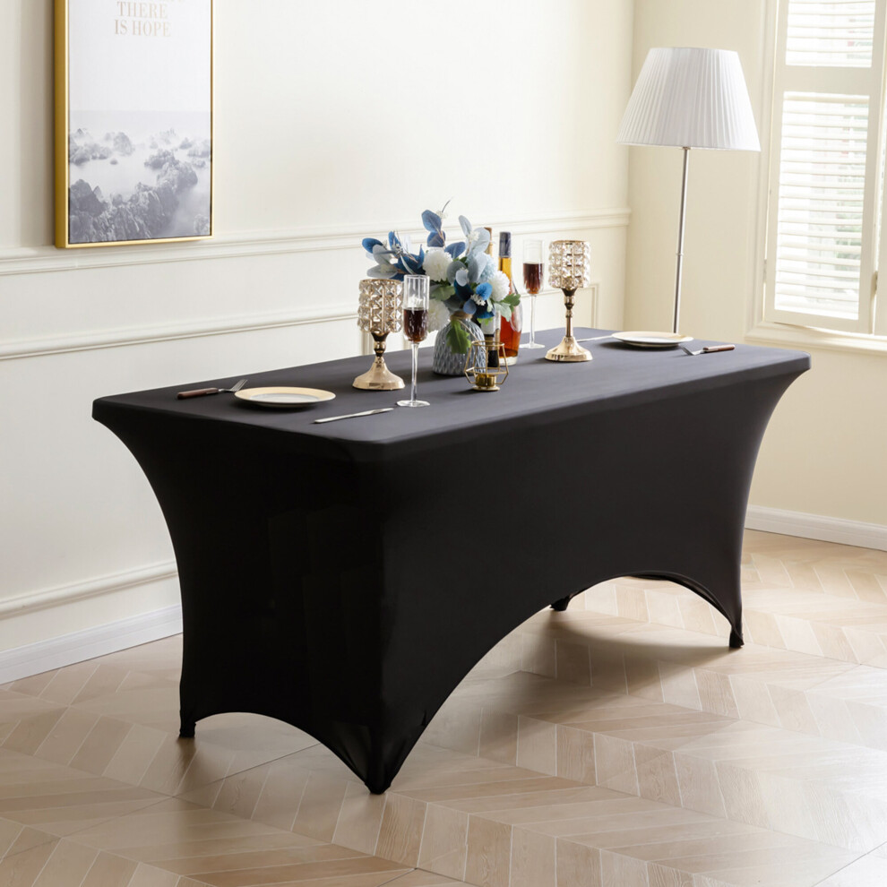 Time to Sparkle 6ft Stretch Spandex Table Cover for Rectangle Tables with Open Back - Universal Rectangular Fitted Tablecloth Protector for Wedding, Banquet and Party Black