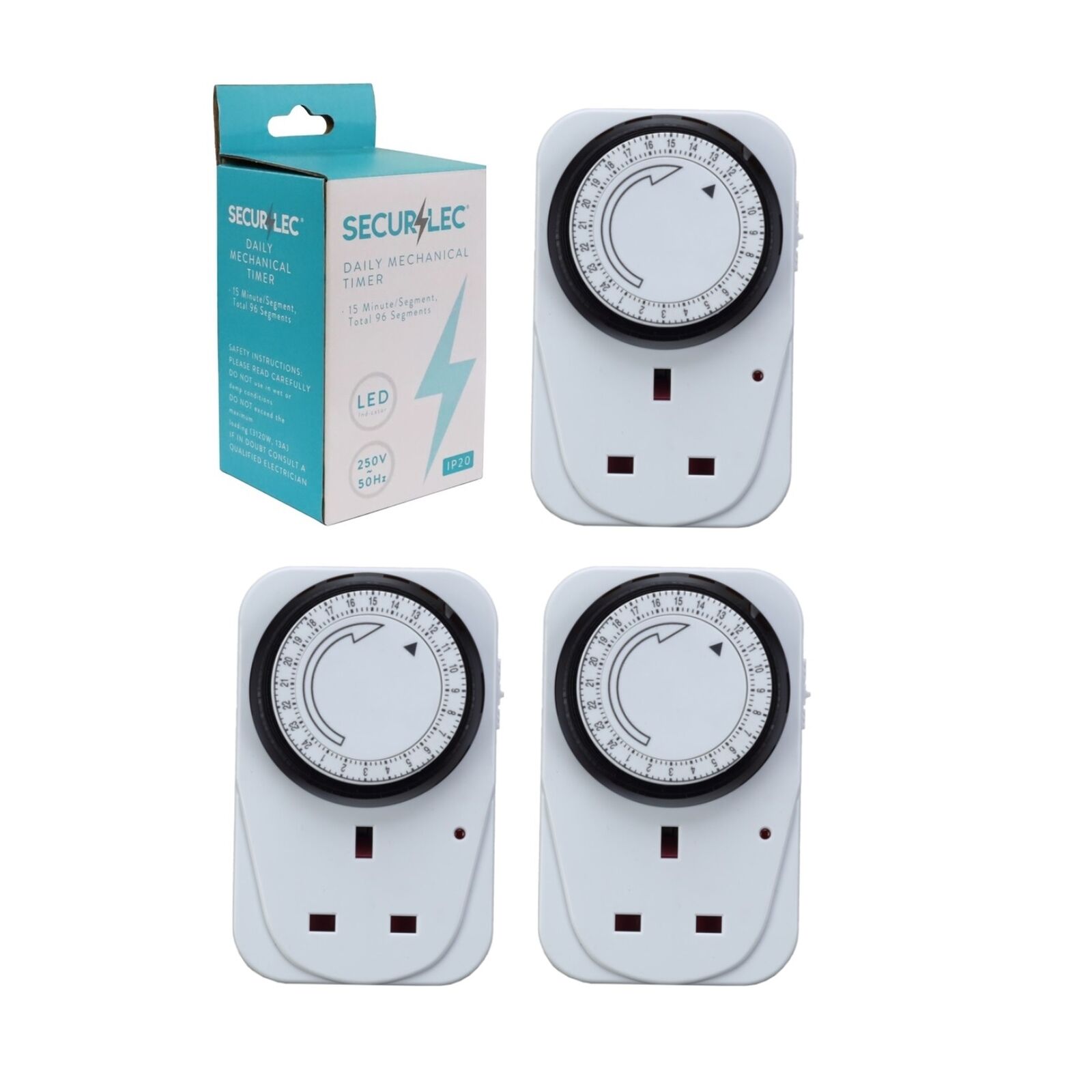 3 24 Hour Timer Plugs UK 3 Pin Daily Mechanical Timer 15 Minute Segments Plug