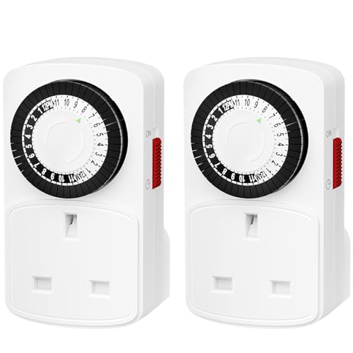 HBN 24 Hour Programmable Plug Timer Socket UK,Plug-in Segment Plugs Timers Switch,Energy Saving Light Switchs for Lamps,Home Security,Indoor Lights and Christmas (30min,2Pack)