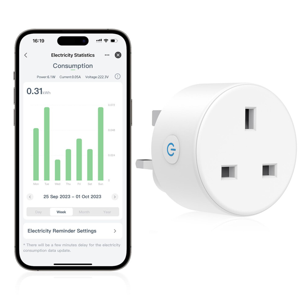 EIGHTREE Smart Plug with Energy Monitoring and Cost Estimation, Alexa Smart WiFi Plugs that Work with Alexa, Google Home and SmartThings, Smart Home Timer Plug Socket UK, 2.4GHz Wi-Fi Only, 13A, 1Pack