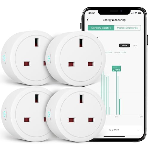 EIGHTREE Smart Plug with Energy Monitoring, Smart Plugs that Work with Alexa, Google Home, WiFi Smart Socket with WiFi Remote Control and Timer Function, 2.4GHz Wi-Fi Only, 13A, 4 Pack