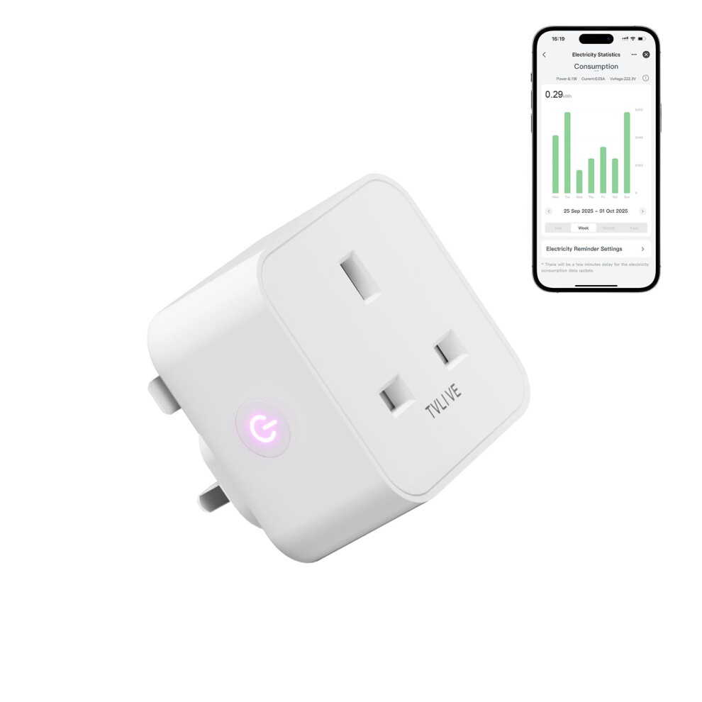 Smart Plug, TVLIVE 1 Pack Smart Plugs Work that with Alexa (Echo/Echo Dot), Google Home Voice Control, Energy Monitoring, Remote Control, Timer & Sch