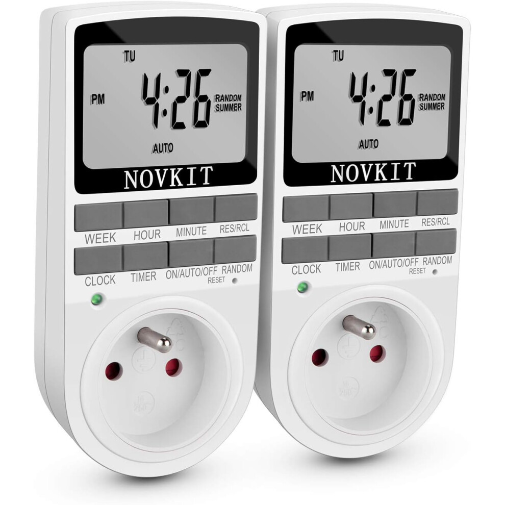 URBZUE Digital Timer Plug Socket, Programmable Switch Timer with 10 ON-Off Programs and Random Mode for Indoor Lights and Home Appliances (230V, 13A, 2900W, 2PACK)