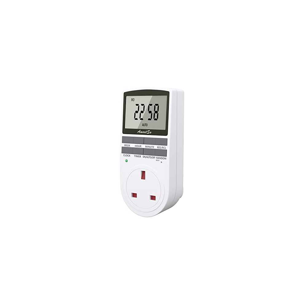 Awootsv Digital Timer Plug Socket with LCD Display 24 Hours/Weekly Indoor Automatic Timer Switch for Lights Plug Socket in Electrical for Home Appliances Timers Socket for Home Security