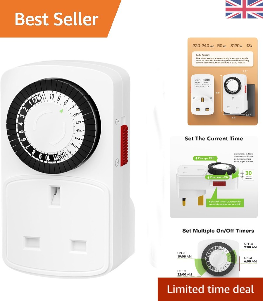 HBN 24 Hour Plug-in Compact Timer Plug Socket, Mini Energy Saver Mechanical Timer Switch for Indoor Lights, Christmas Lights and Home Appliances (13A