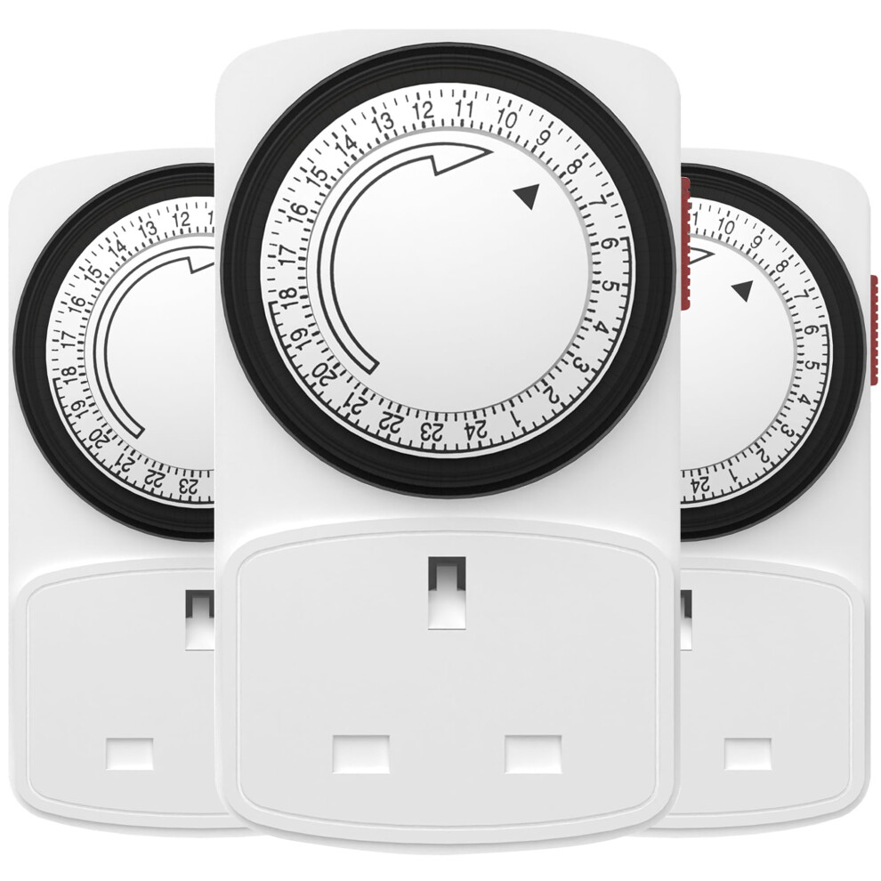 HBN Mechanical Timer Plug Socket, 24 Hour Segment Programmable Energy Saving Plug-in Timer Switch for Lights and Home Appliances (13A/3120W, 3 Pack)