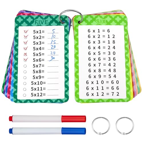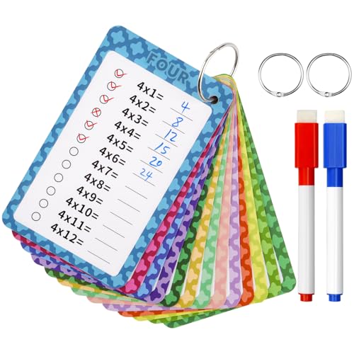 Hanqing 13 Pcs Times Tables Multiplication Flash Cards, Times Tables Poster, 0-12 Times Table Math Flash Cards with 2 Dry Erase Markers and 2 Rings, Multiplicar Math Game for 1st to 3rd Grade
