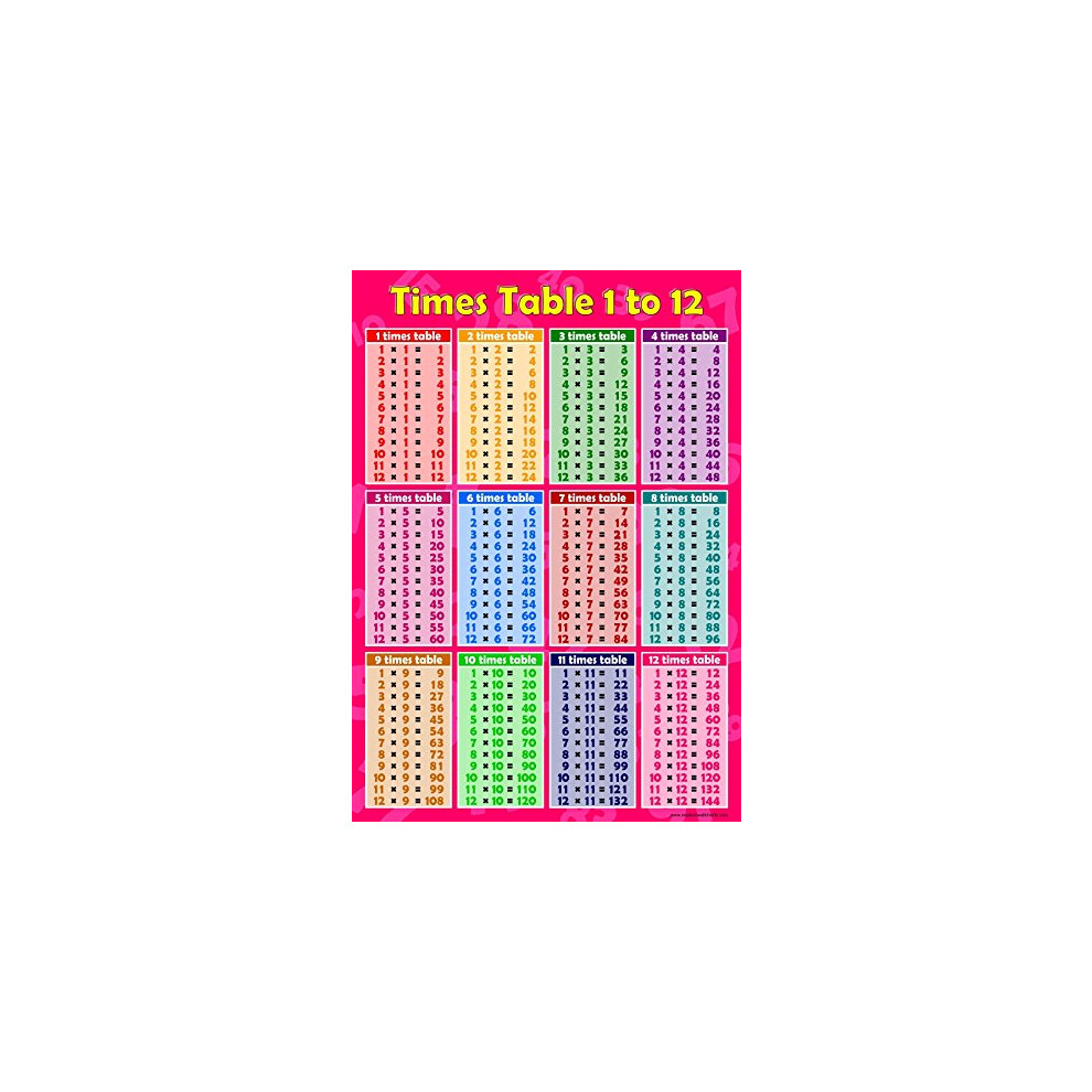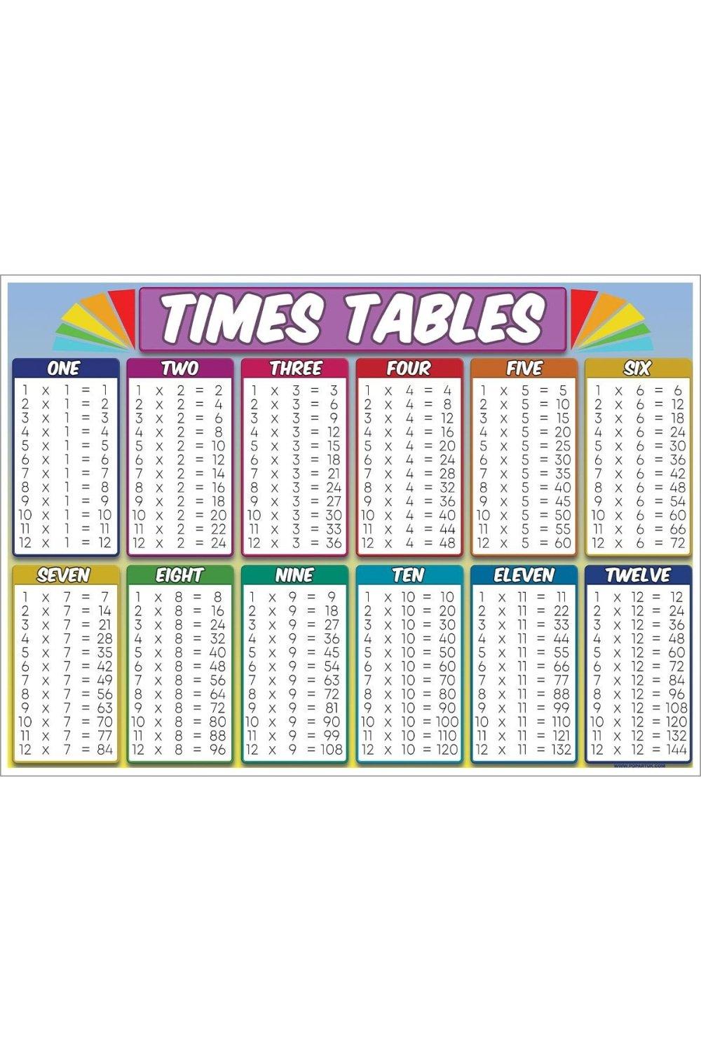 Times Table Poster 1-12 - Early Years Resource - 60x40cm Quality Laminated Paper