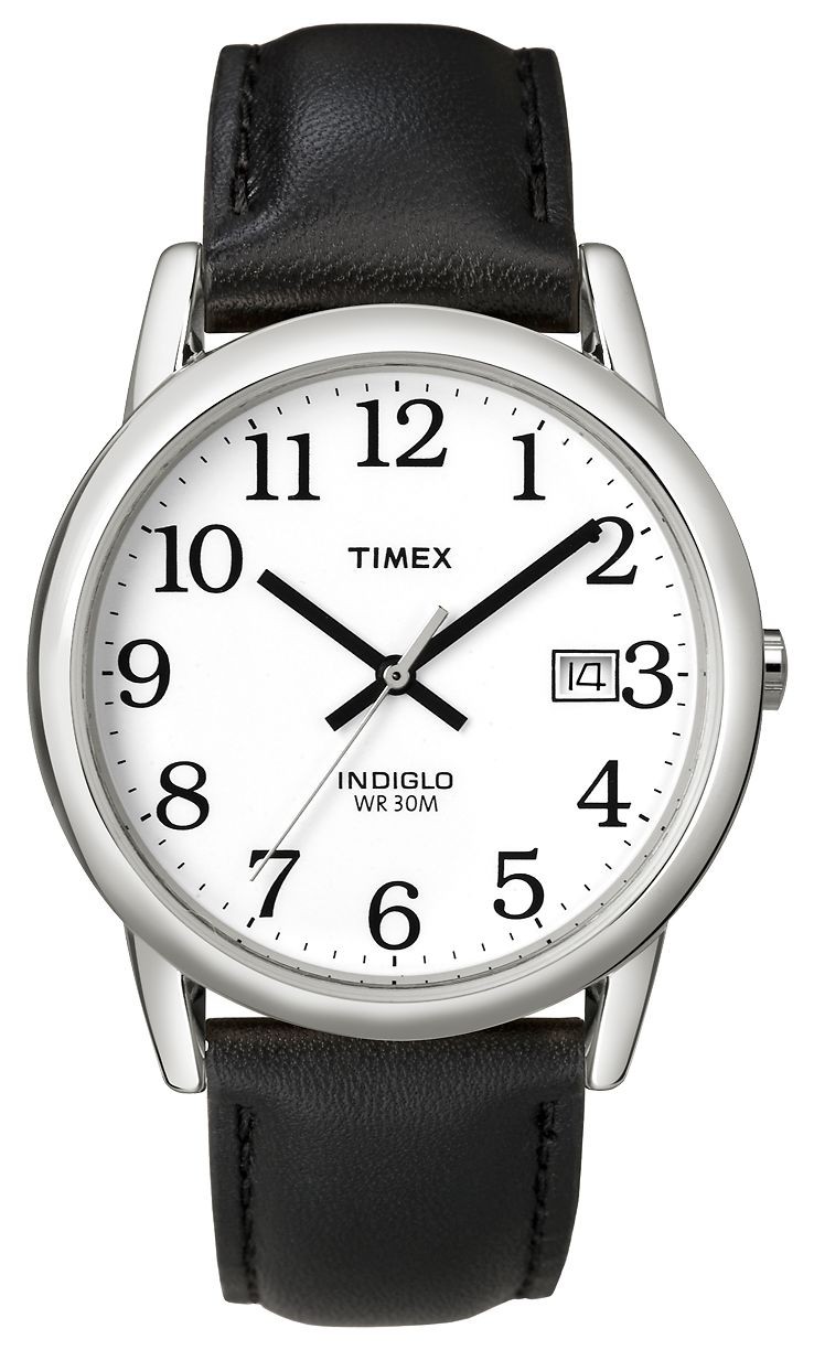 Timex Easy Reader INDIGLO (35mm) White Dial / Black Leather Strap T2H281 Watch