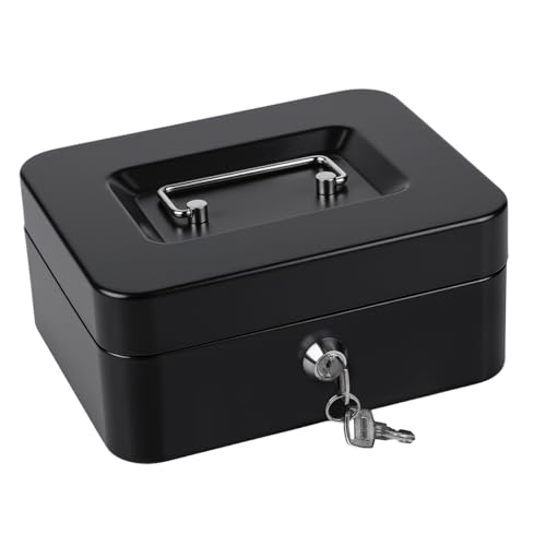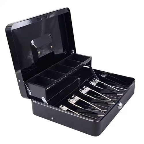 Cash Box with Key, Money Tin Box with Money Tray (Black-1)