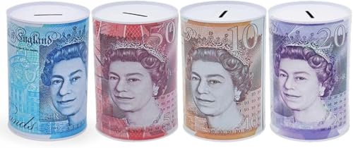 MONEY BOX ® Sterling Money Box Tin x 1, Piggy Bank Savings Money Tin, Multi-colour, 15 x 10 x 10 cm Single Unit.