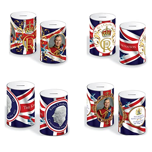 4 x KING CHARLES III MONEY TIN -Piggy Bank, LIMITED EDITION CORONATION Coin Tin, Cash, Saving Tin, Money Box, Birthday Money, Holiday & Christmas Fund (4 KING CHARLES III)