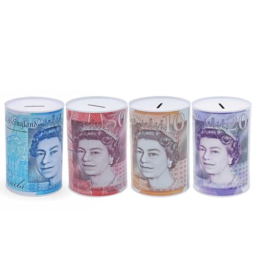 2 x Tin MONEY BOX ® - STERLING MONEY BOX TIN PIGGY BAK, MONEY TIN,SAVINGS,CHRISTMAS FUND, STERLING MONEY POT TINPLATE SAVING MONE BOX, 15 x 10 x 10 cm - PACK OF 2