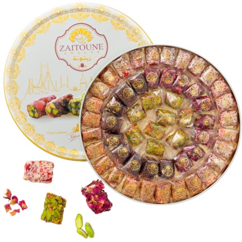 Zaitoune Turkish Delight Mix - 650 g | Luxury Assortment with Pomegranate, Pistachio & Rose Presented in a Beautiful Gift Tin | Authentic Luxury Sweets | Handmade in Turkey & Traditional Recipe