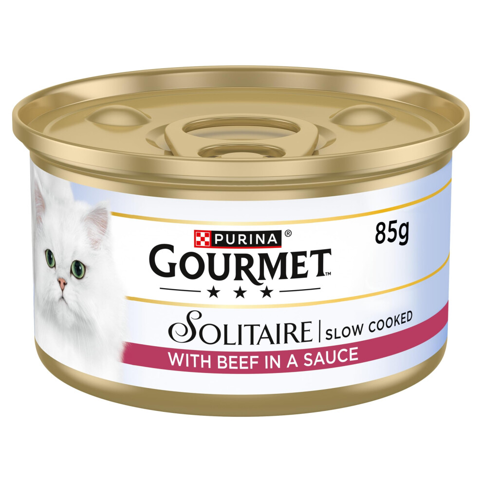 Gourmet Solitaire Tinned Cat Food with Beef 85g, Pack of 12