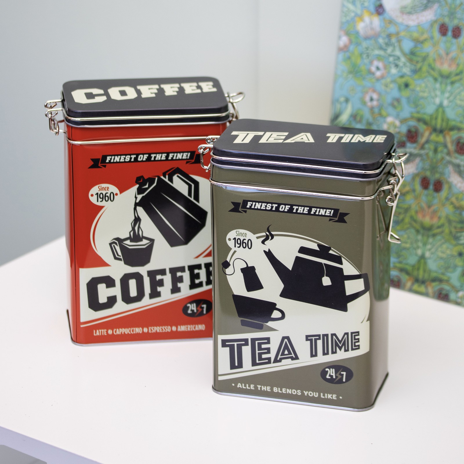 Set of 2 Retro Cafe Tea Coffee Storage Tins Airtight Metal Kitchen Canisters