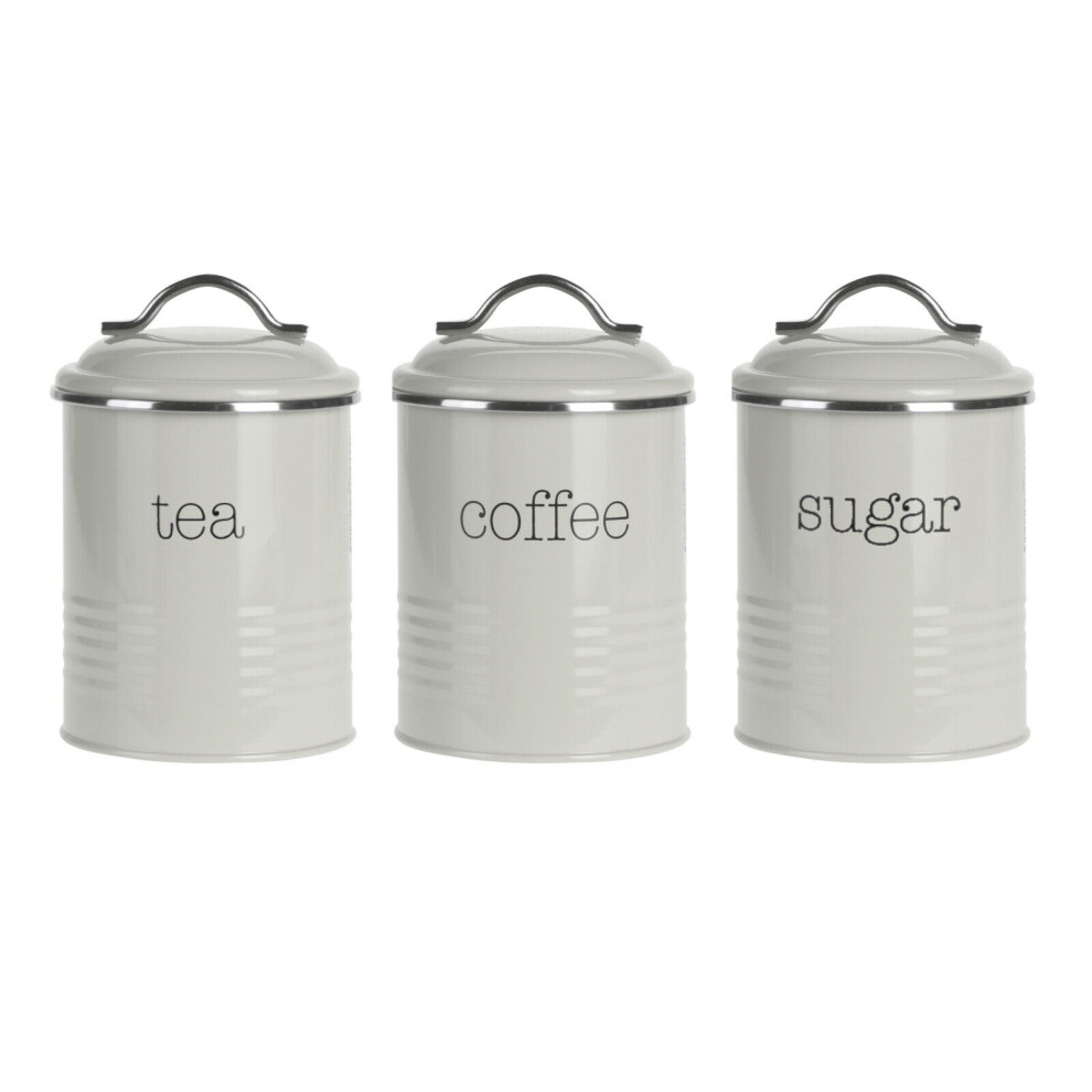 (Grey) Retro Tea Coffee Sugar Canisters Set of 3 Kitchen Storage Tins Jar Air Tight Lid