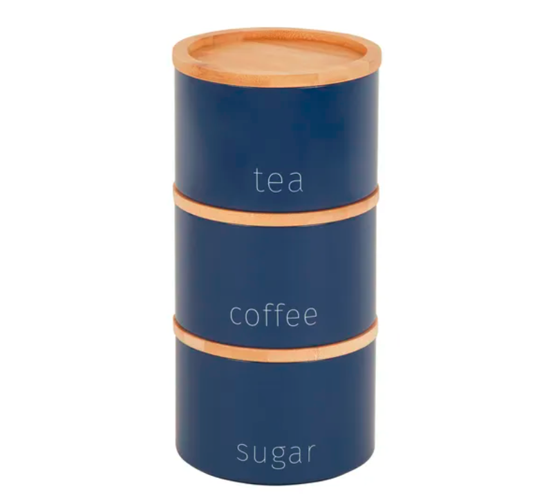 Set of 3 Tea Coffee Sugar Tins 0.8L Kitchen Storage Canisters Blue Red Pink Pots