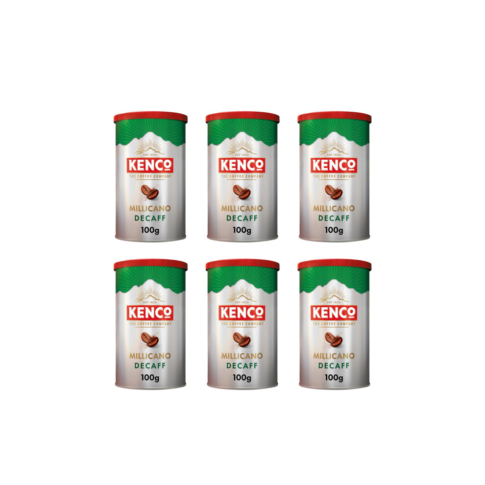 Kenco Millicano Decaff Instant Coffee 100g (Pack of 6 Tins, Total 600g)