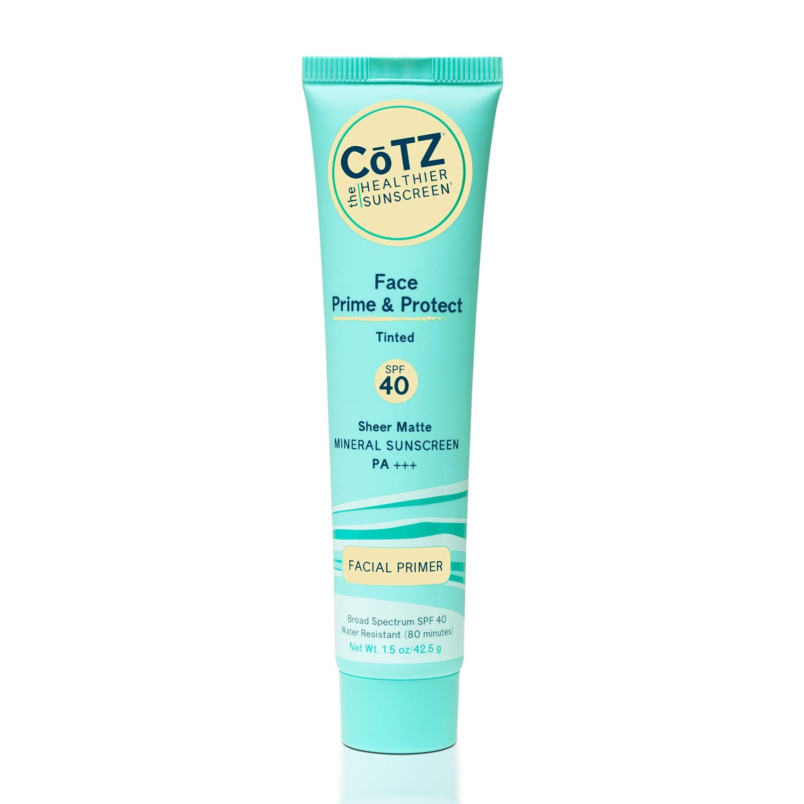 COTZ Face Prime & Protect Tinted Mineral Sunscreen and Facial Primer Broad Spectrum SPF 40; PA+++ 1.5 oz / 42.5 g.
