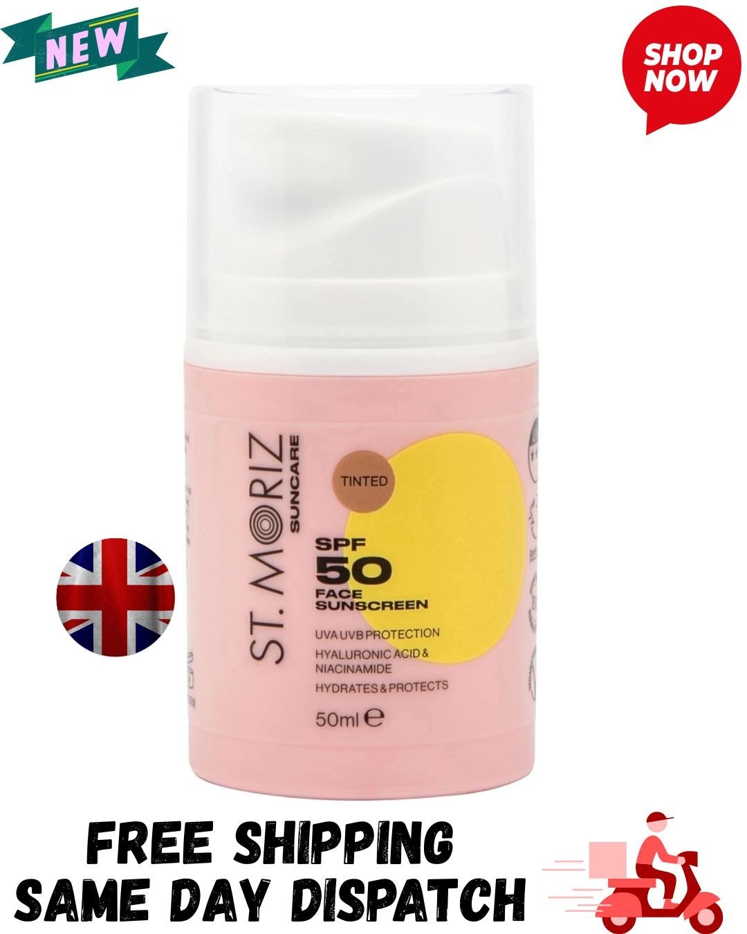 St. Moriz SPF 50 Tinted Face Sunscreen – UVA/UVB Protection, Lightweight 50ml-UK