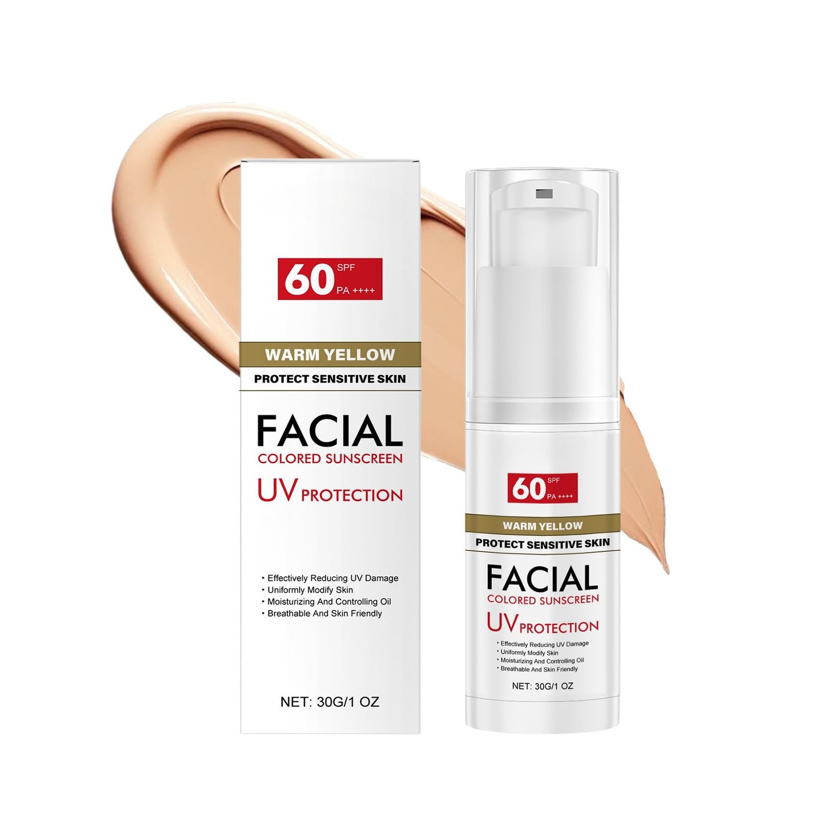 Face Tinted Sunscreen SPF 60,Light & Breathable Tinted Face Sunscreen,Oil-Contr