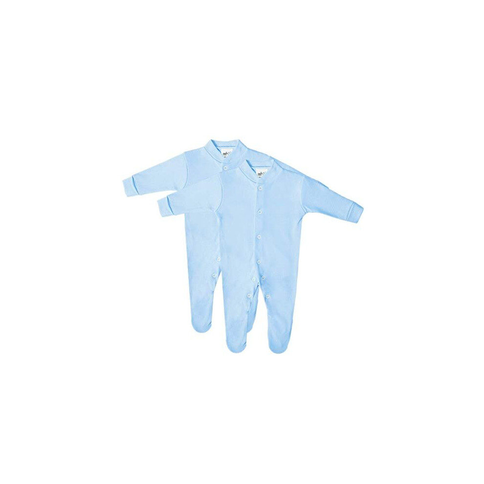 Premature Baby Sleepsuits, Tiny Baby Sleepsuits, Premature Clothes, Tiny Clothes, Preemie Clothes 2 Pack for Boys and Girls, Made in Britain, Pure Cotton, Blue, 5, 8lbs