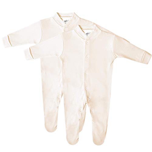 Premature Baby Sleepsuits, Tiny Baby Sleepsuits, Premature Clothes, Tiny Clothes, Preemie Clothes 2 Pack for Boys and Girls, Made in Britain, Pure Cotton, Cream, 3-5lbs