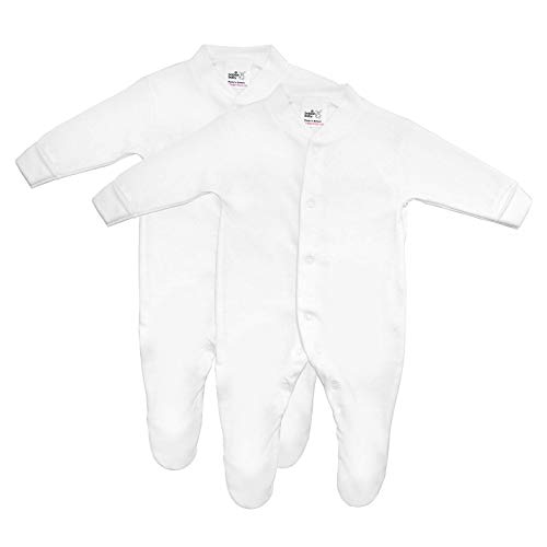 Premature Baby Sleepsuits, Tiny Baby Sleepsuits, Premature Clothes, Tiny Clothes, Preemie Clothes 2 Pack for Boys and Girls, Made in Britain, Pure Cotton, White, 3-5lbs
