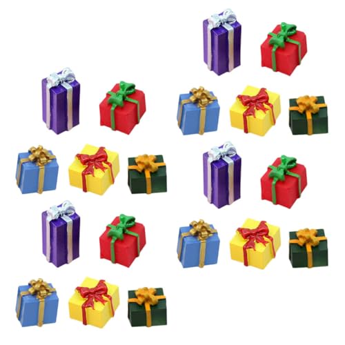 Alipis 30pcs Mini Resin Box Ornaments - Tiny Dollhouse Boxes for Holiday Scene Decoration, Xmas Charms for Crafts And Party Favors