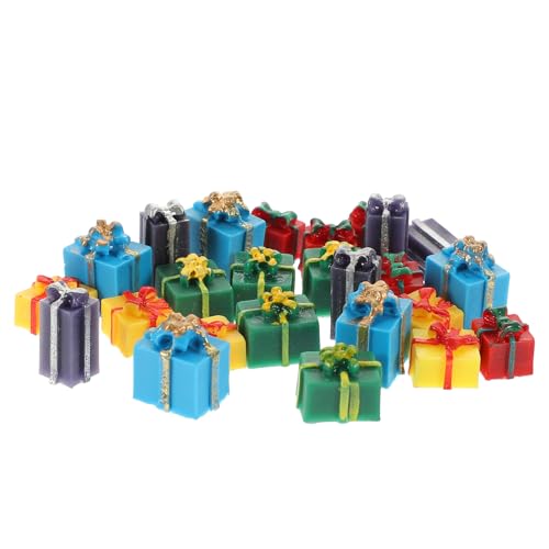 BESTonZON 30pcs Resin Miniature Christmas Box Model Dollhouse Boxes Tiny Packages for Holiday Decorations Shop Display