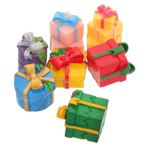 BESPORTBLE 7pcs Miniature Christmas Boxes Resin Ornaments for Tree Decoration DIY Crafts Tiny Handcrafted Present Decorations for Dollhouse and Holiday