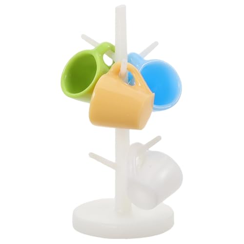 BESPORTBLE Miniature Kitchen Stemware Holder with Colored Mugs Space-saving Dollhouse Water Cup Organizer for Dining Table Decor Tiny Plastic Cup Rack for Micro Landscape Scenes and