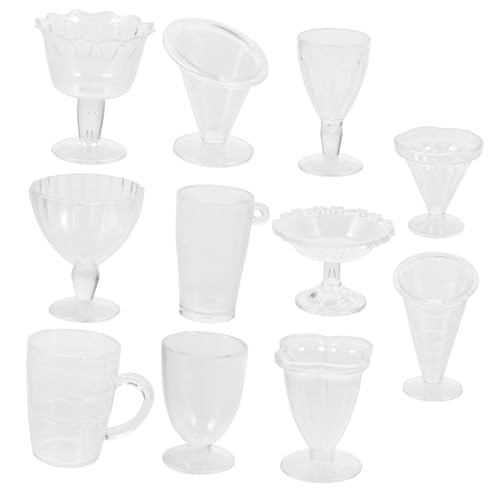 Gogogmee 6pcs Mini Ice Cream Goblet Ornaments for Dollhouse Tiny High Cup Models for Miniature Home Decor Multifunctional Mini House Accessories Clean Color Mix