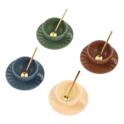 Toddmomy 4 Sets Miniature Tea Set: Tiny Coffee Cup and Saucer - Dollhouse Mug and Spoon Toy Props for Pretend Play Tea Party Kitchen Decor