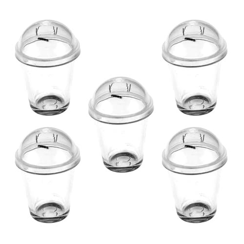 TOYANDONA 5Pcs Transparent Mini Coffee and Milk Tea Cup Models with Straw Covers Realistic Tiny Beverage Cup Props for Mini House Decorations and DIY Crafts Lightweight and Compact Figurines