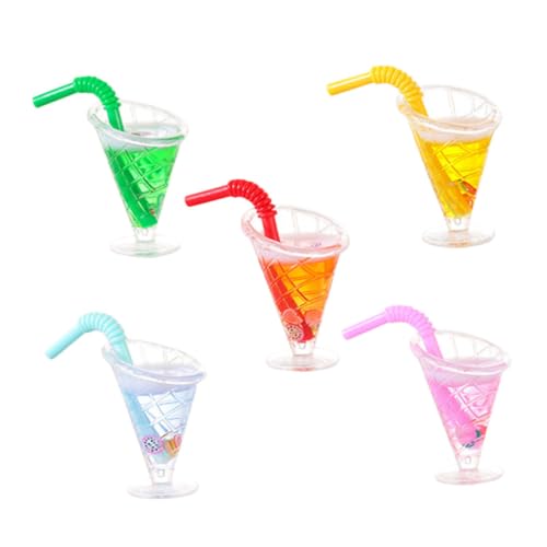 WOONEKY 5pcs Miniature Hawaiian Dessert Cups Realistic Tiny Juice Cup Models with Vibrant Colors Compact Dollhouse Supplies for Tropical Home Decor and Summer Party Decorations