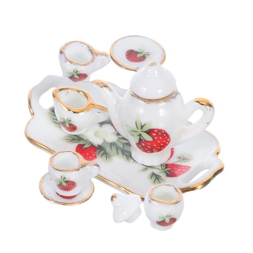 BESPORTBLE Miniature Ceramic Tea for Dollhouse Porcelain Teapot Tiny Coffee Cup Saucer Tray Realistic Mini Tea Party Pretend Play Tableware for Collectors