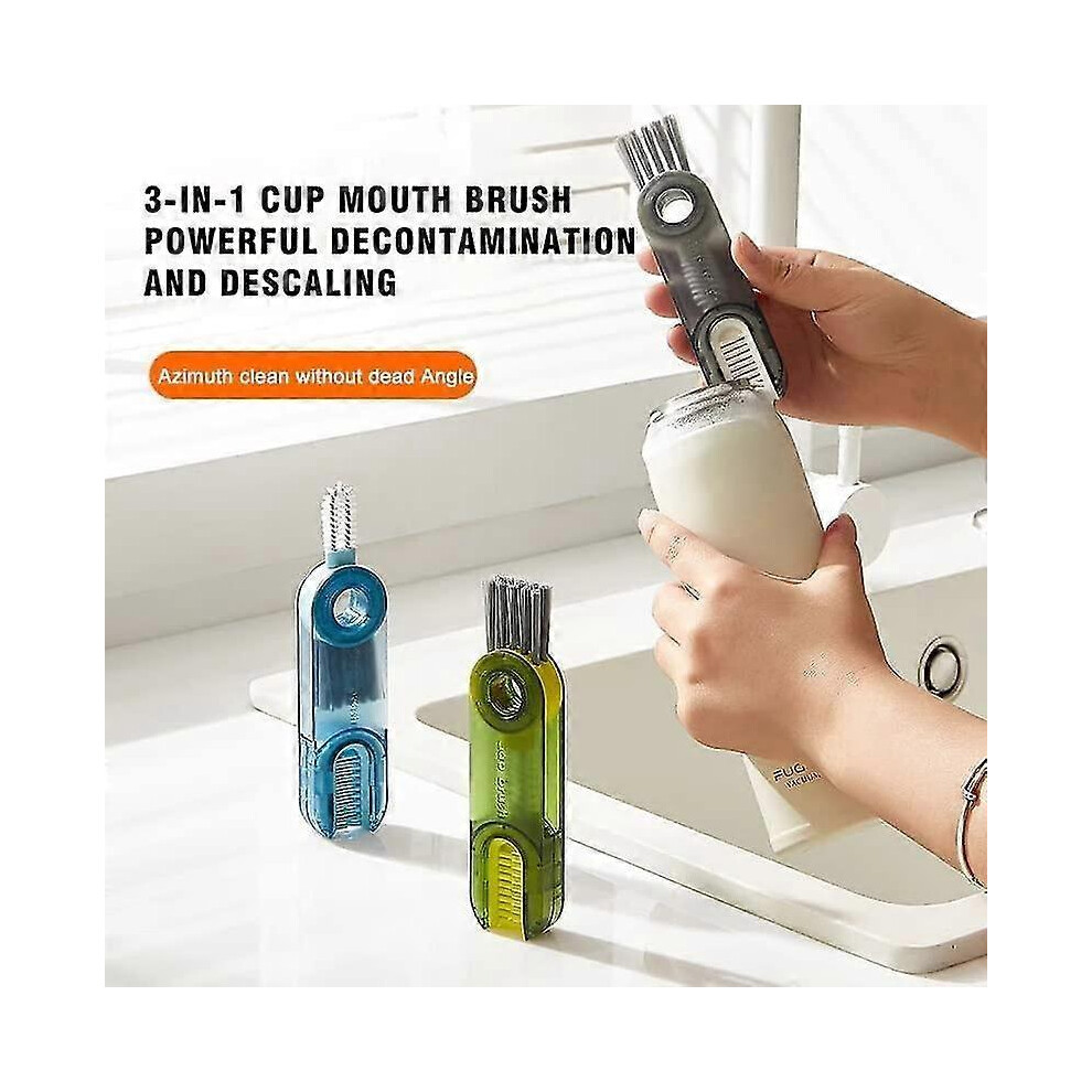 (Green) 2pcs 3 In1 Tiny Bottle Cup Lid Detail Brush Multifunctional Crevice Cleaning