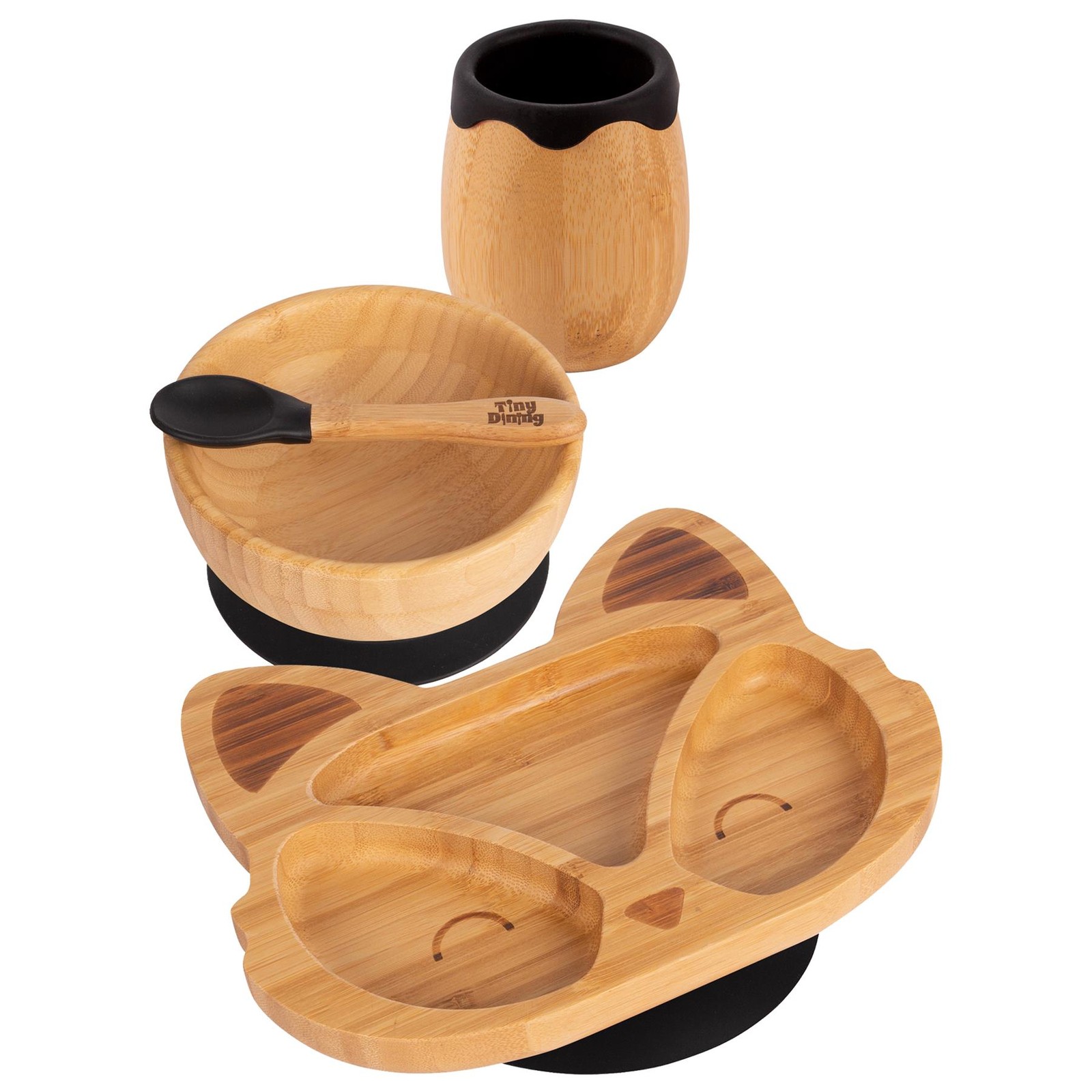 4pc Tiny Dining Black Fox Bamboo Baby Feeding Set Kids Plate Bowl Spoon Cup