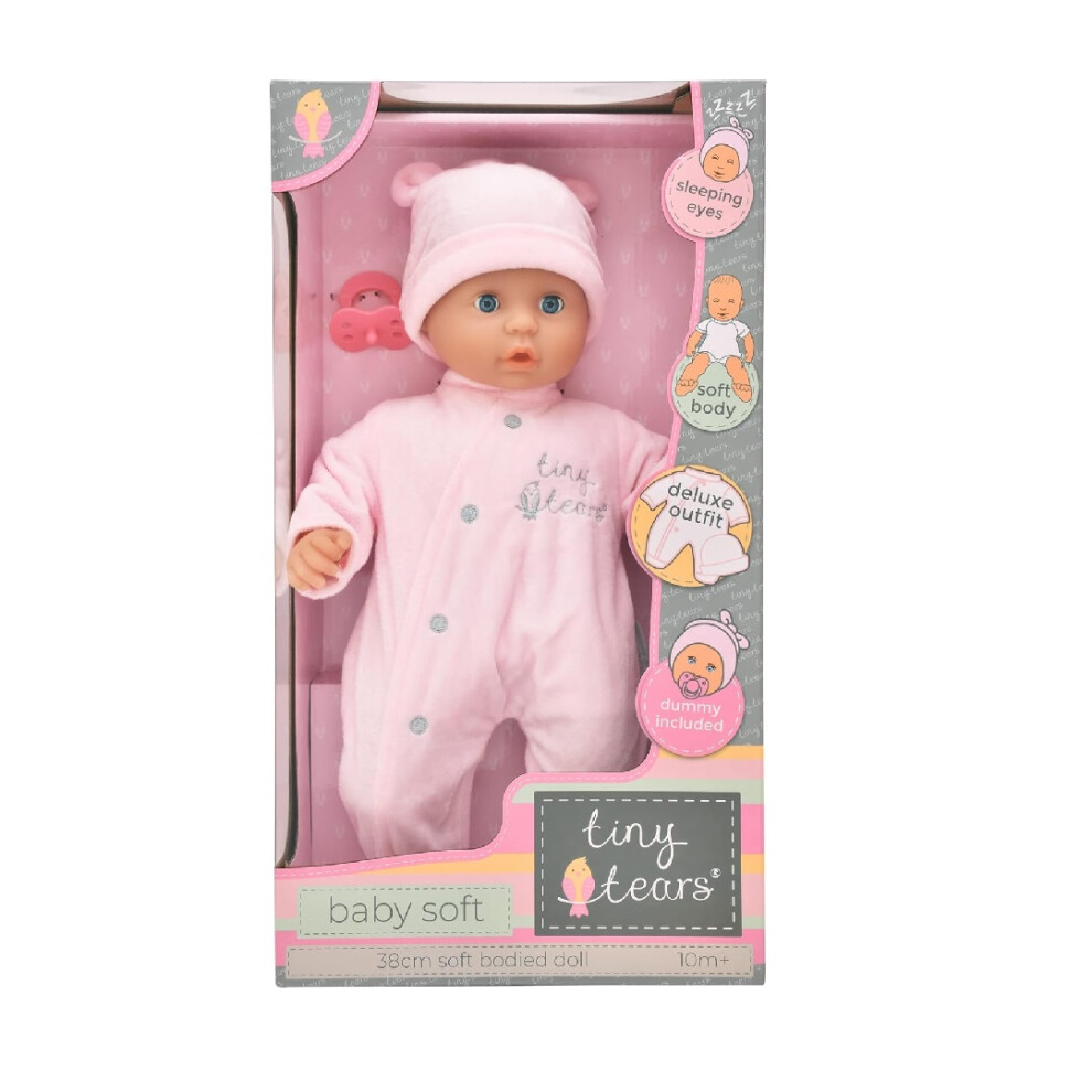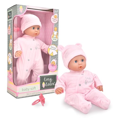 | Tiny Tears - Baby Soft - 38cm soft bodied doll in pink outfit: One of the UK's best loved doll brands! | Nurturing Dolls| Ages 10m+
