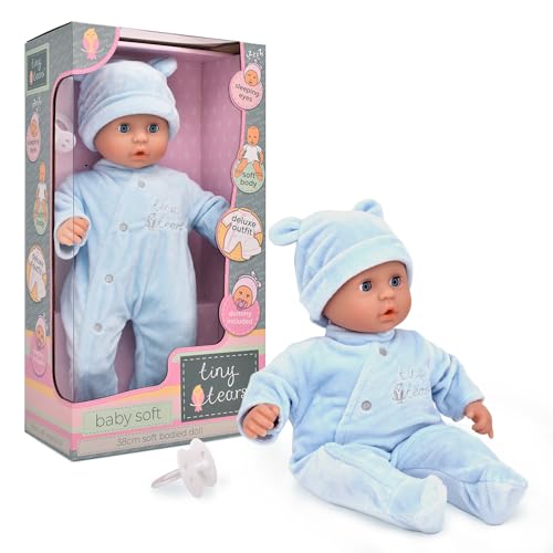 John Adams Tiny Tears Baby Soft Doll 15" (38 cm) - Pale/White Skin | Soft Bodied Baby with Closing Eyes & Dummy | Deluxe Blue Outfit | Cuddly First Doll Set | Toy for Toddlers Age 10 Months+