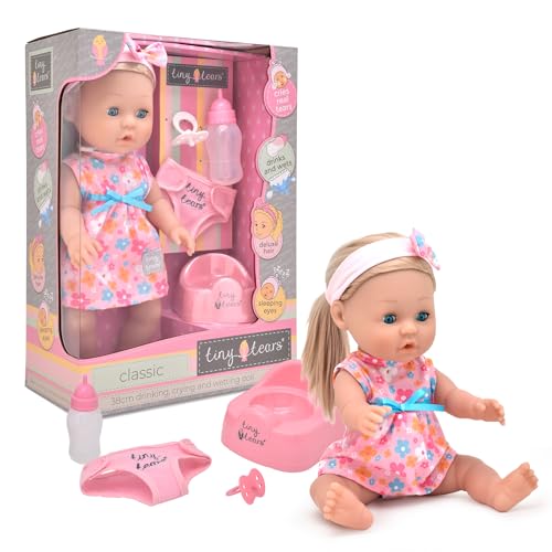 John Adams | Tiny Tears - Baby Classic - 38cm crying and wetting doll: One of the UK's best loved doll brands! | Nurturing Dolls | Ages 18m+