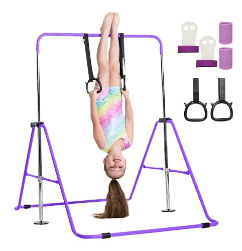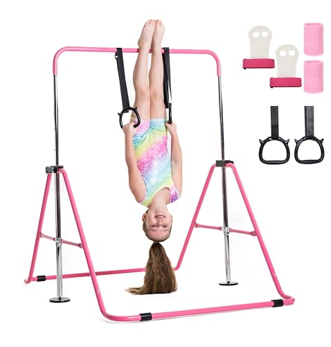 TINY TUMBLERS Gymnastics bar for kids - A great piece of gymnastic equipment for home use for a range of ages - Rings and hand grips included!