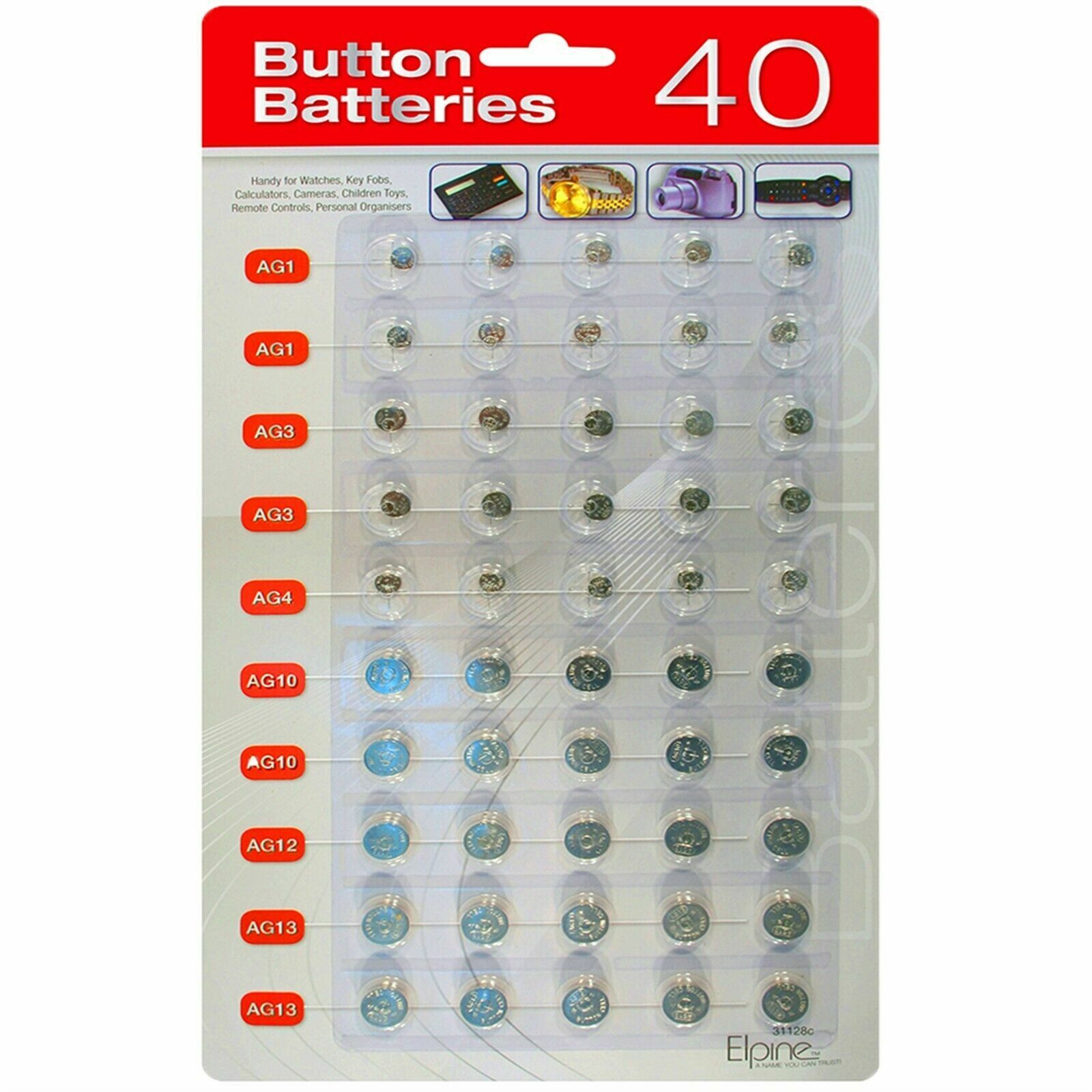 40 Assorted Button Cell Watch Tiny Batteries AG1/3/4/5/12/13 Individually Sealed