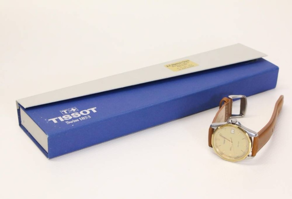 As New Rare Vintage 1980s Tissot Pr 100 Dual 9ct Gold & Steel Watch In Original Box Working
