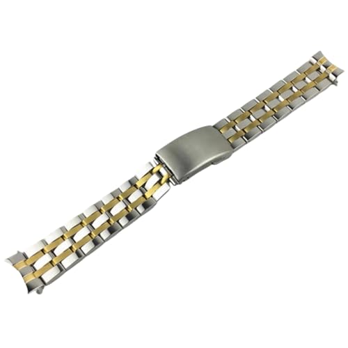 ROUREOX Men's Solid Metal Replacement Watch Strap,Stainless Steel Curved End Watch Band for Tissot PRC 200 T461/T014/T17/T055-Silver Gold 19MM