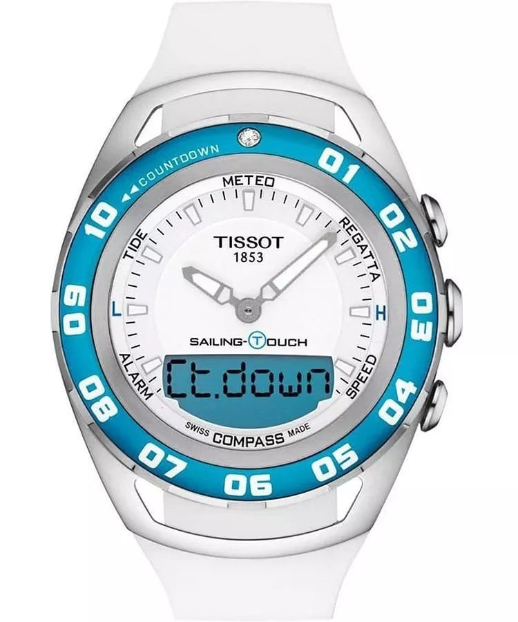 Tissot White Mens Analogue-Digital Watch T-touch Sailing T0564202701100