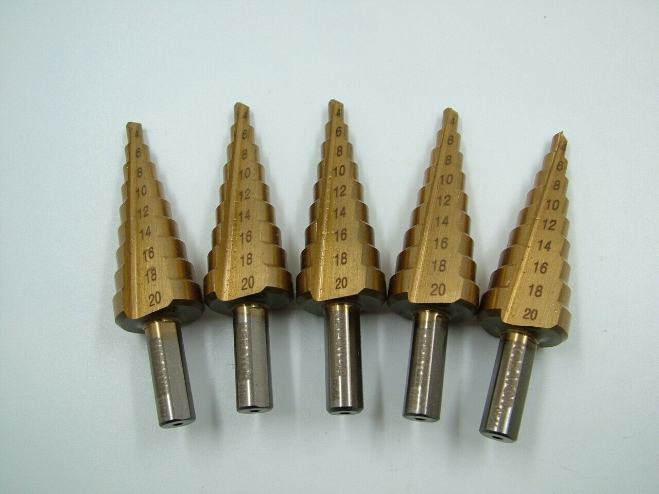 HSS Titan step drill Pack x5 4-20mm titanium nitride Kreator brand 9 steps x2mm
