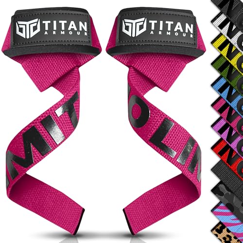 Titan Armour® Weight Lifting Straps | Extra-Long Neoprene Padded Heavy-Duty Weightlifting Straps | Deadlifts | Anti-Slip Gel Option | Gym Accessories Men & Women (Pink (Gel Grip))